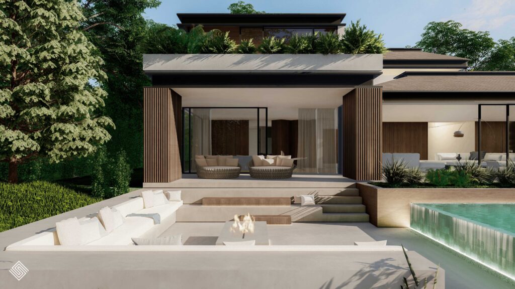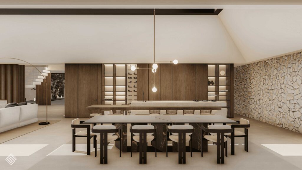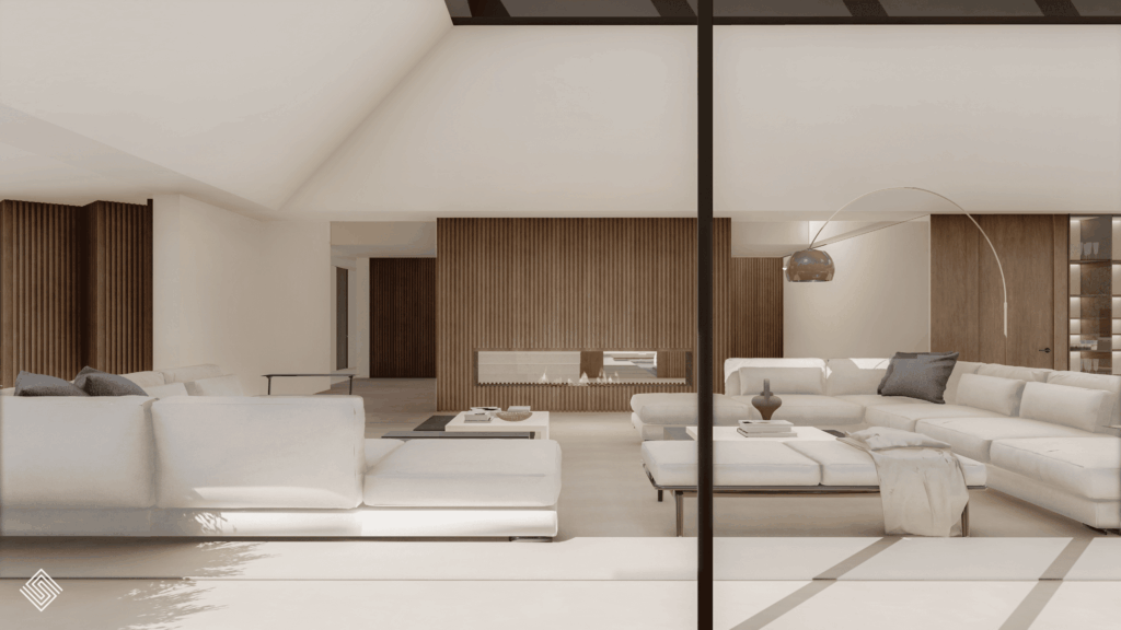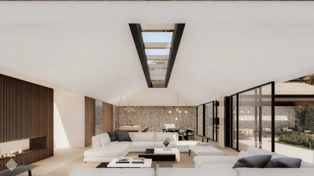 dando lugar a una vivienda que conserva su carácter original mientras adopta una estética actual y refinada. La entrada principal, concebida como un patio andaluz reinterpretado, se convierte en el corazón de la casa: un espacio luminoso y abierto que invita a entrar. En el interior, los espacios amplios y conectados refuerzan la continuidad visual, mientras los materiales naturales aportan calidez y autenticidad. El resultado es una villa de lujo en Sotogrande que equilibra tradición y modernidad, reflejando una forma contemporánea de entender la arquitectura mediterránea en la Costa del Sol.