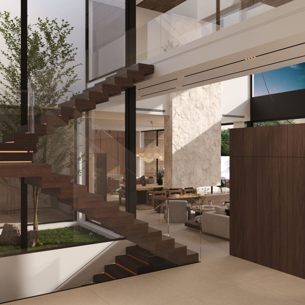Cada detalle refleja una búsqueda de equilibrio entre arquitectura y naturaleza, donde la piedra, la madera y los tonos neutros crean una atmósfera serena y atemporal. Una vivienda que resume la esencia del diseño residencial de alta gama en la Costa del Sol…