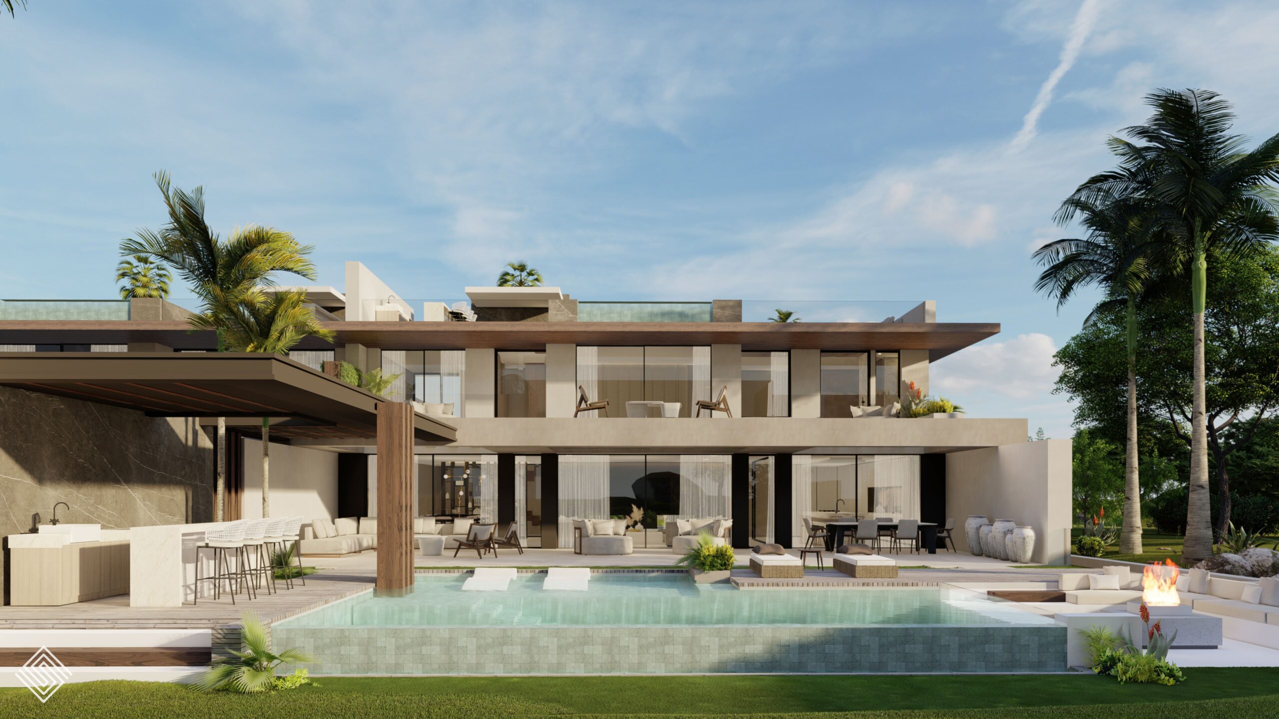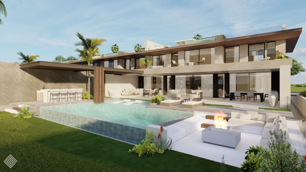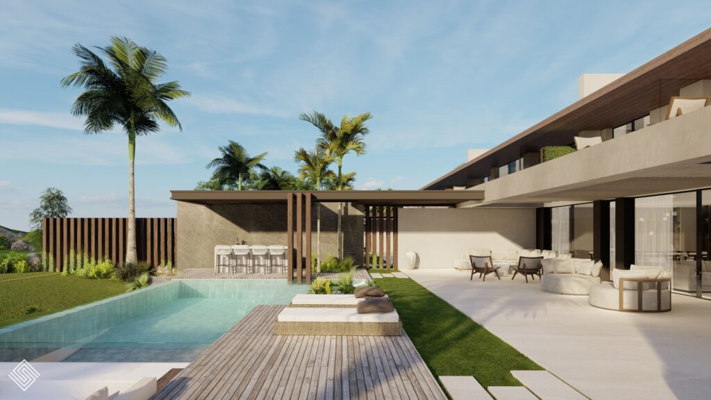 donde la intervención busca unificar la estética, potenciar la luz natural y revalorizar la arquitectura original desde un enfoque contemporáneo y sereno. La actuación combina materiales naturales, texturas cálidas y líneas limpias, generando espacios amplios y conectados que reflejan el estilo mediterráneo más actual. La luz, la continuidad visual y el equilibrio entre modernidad y confort definen este conjunto residencial de arquitectura de lujo en la Costa del Sol.