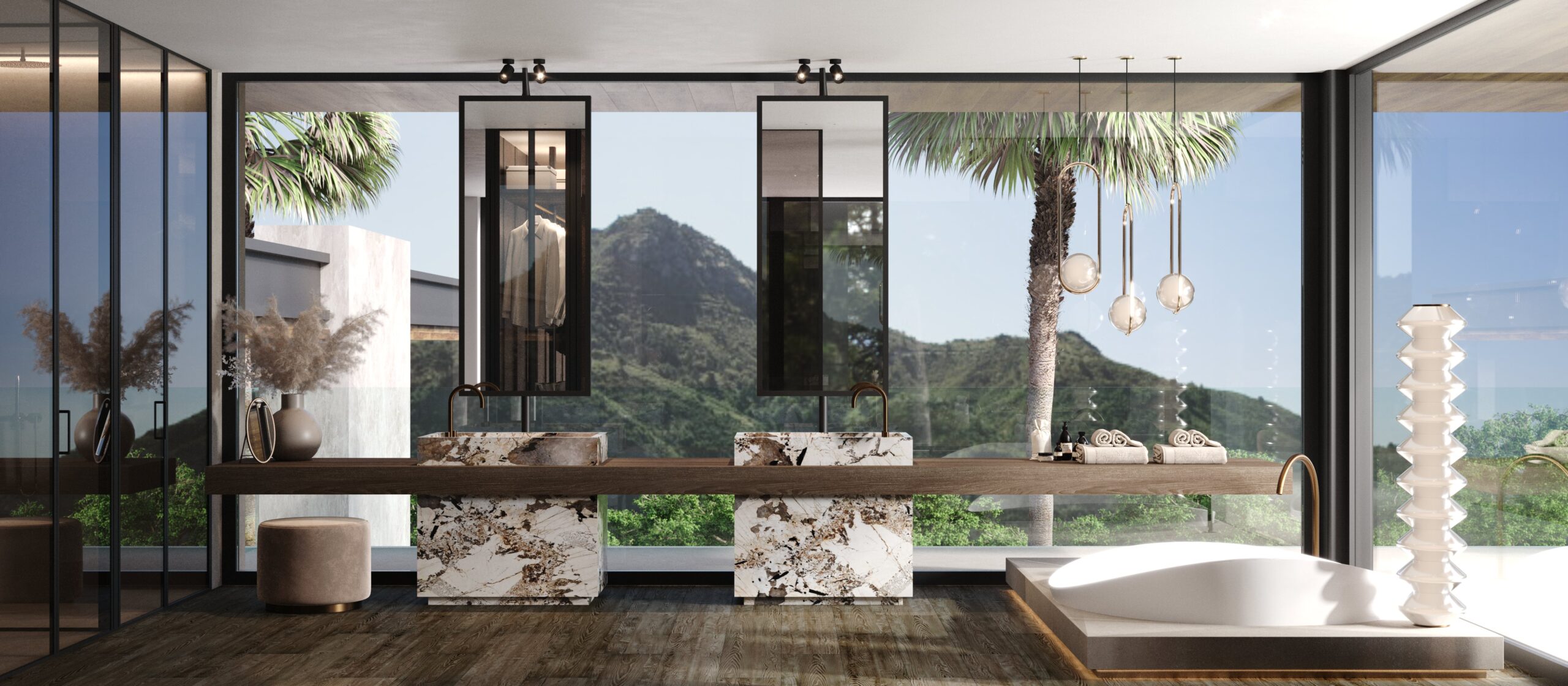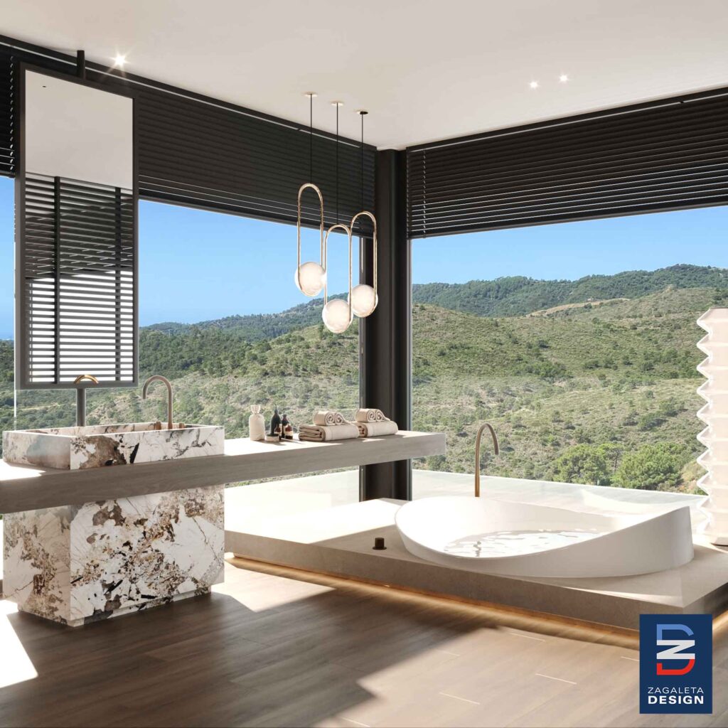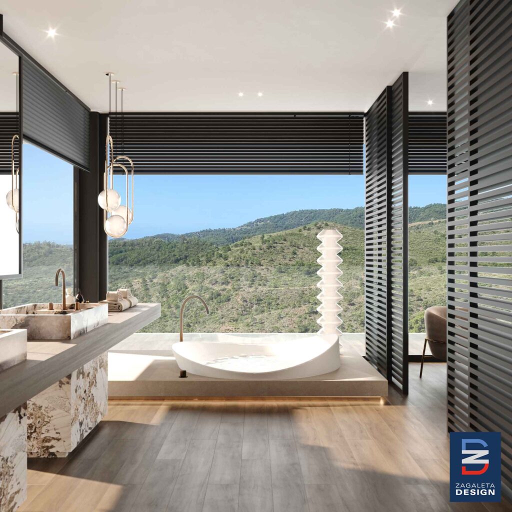 Situada en La Zagaleta, esta villa de lujo se organiza alrededor de un gran patio central que articula los espacios y multiplica las perspectivas hacia el entorno. Los patios interiores y las aperturas cuidadosamente estudiadas permiten que la vivienda respire, aportando ritmo, profundidad y una conexión constante con el exterior. Los materiales naturales y la pureza formal refuerzan el carácter sereno y atemporal de esta obra de arquitectura en la Costa del Sol.